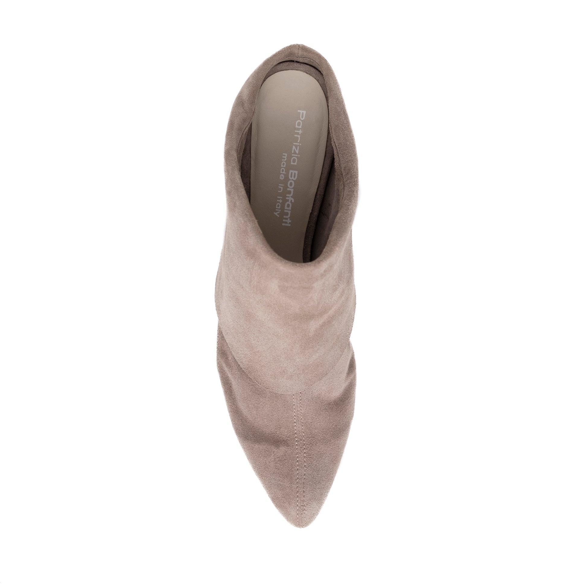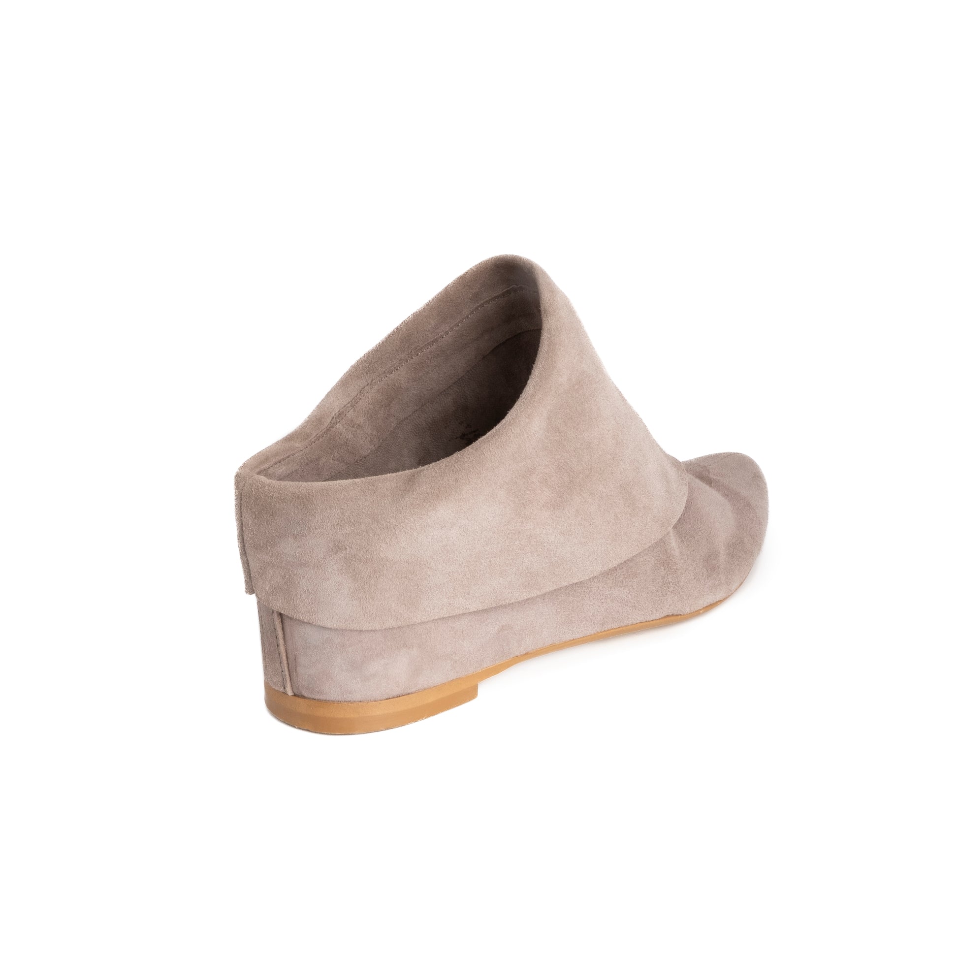 Un equilibrio perfetto tra design contemporaneo e comfort sartoriale. Questo stivaletto è realizzato in suede grigio morbido, lavorata per avvolgere il piede con naturalezza e creare leggere pieghe che valorizzano la texture del materiale, rendendo ogni paio unico.