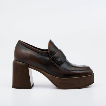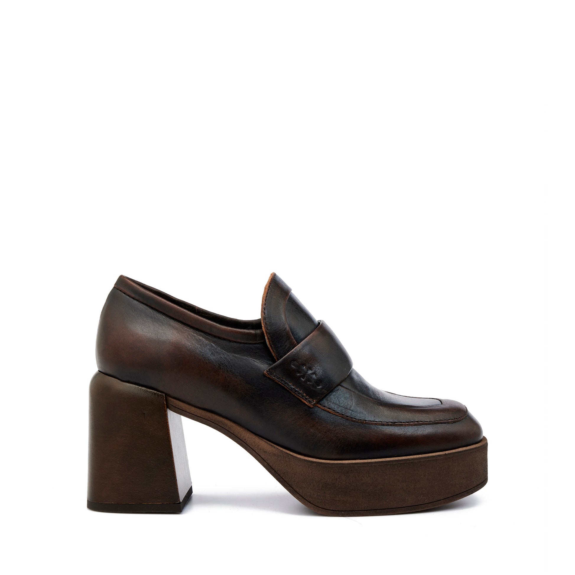 Scarpa mocassino in pelle, suola up gomma, altezza tacco 85 battuta 40 platform 30, interno pelle