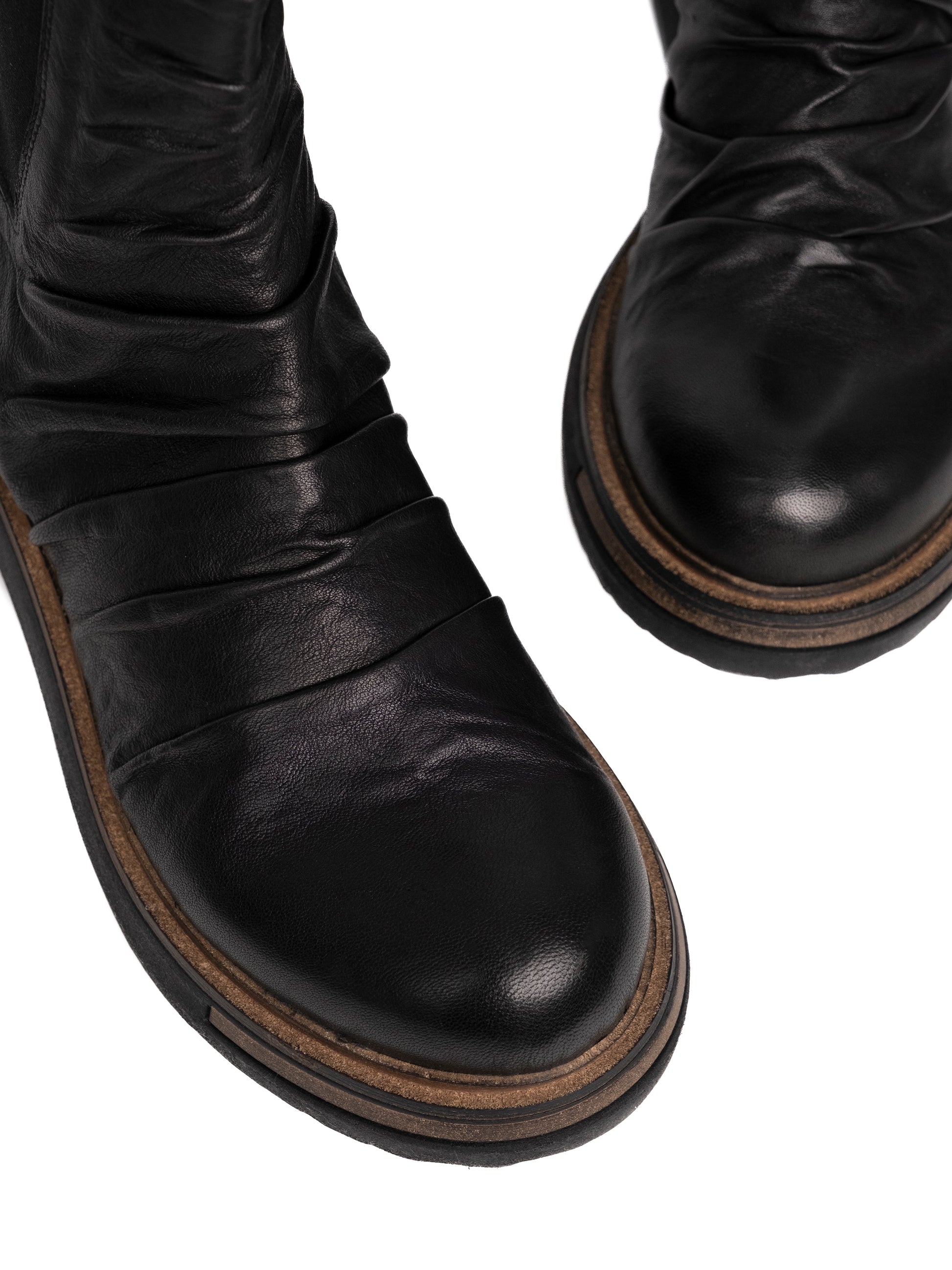 Scopri gli stivaletti in pelle NERA TOKI di Patrizia Bonfanti, un connubio perfetto di artigianalità e stile senza tempo. Realizzati con cura artigianale, questi stivali alla caviglia sono dotati di elastico laterale che garantisce una calzata comoda e pratica. Le loro pieghe mordide creano un affascinante effetto vintage e di movimento, rendendoli ideali per completare un look urbano e moderno. Eleganti e versatili, i TOKI rappresentano un esempio di raffinatezza senza tempo, perfetti per chi desidera distinguersi con un tocco di classe e originalità.