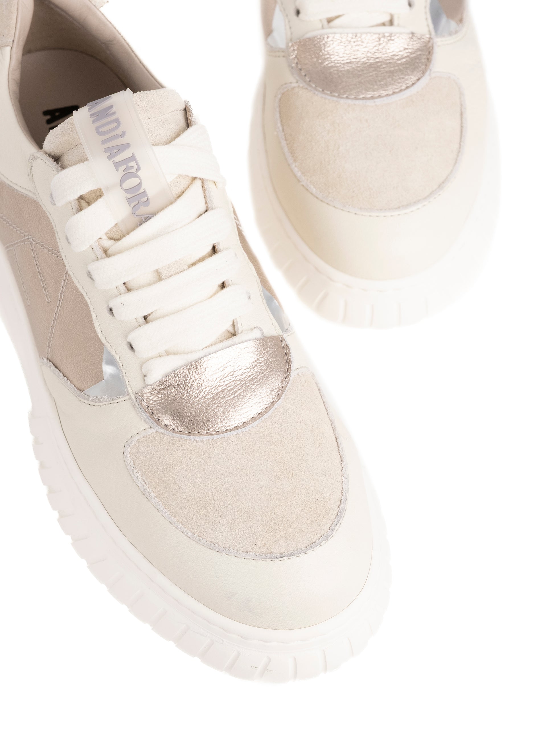 Discover the CLOE model, the ideal women's footwear for a clean and refined look. Made from elegant white leather, this shoe stands out for its sophisticated simplicity and minimalist design. The cream-colored EVA sole, soft and flexible, ensures natural movement and superior comfort, making it perfect for a chic sporty style. Ideal for any occasion, CLOE combines practicality and style in a versatile and trendy shoe.
