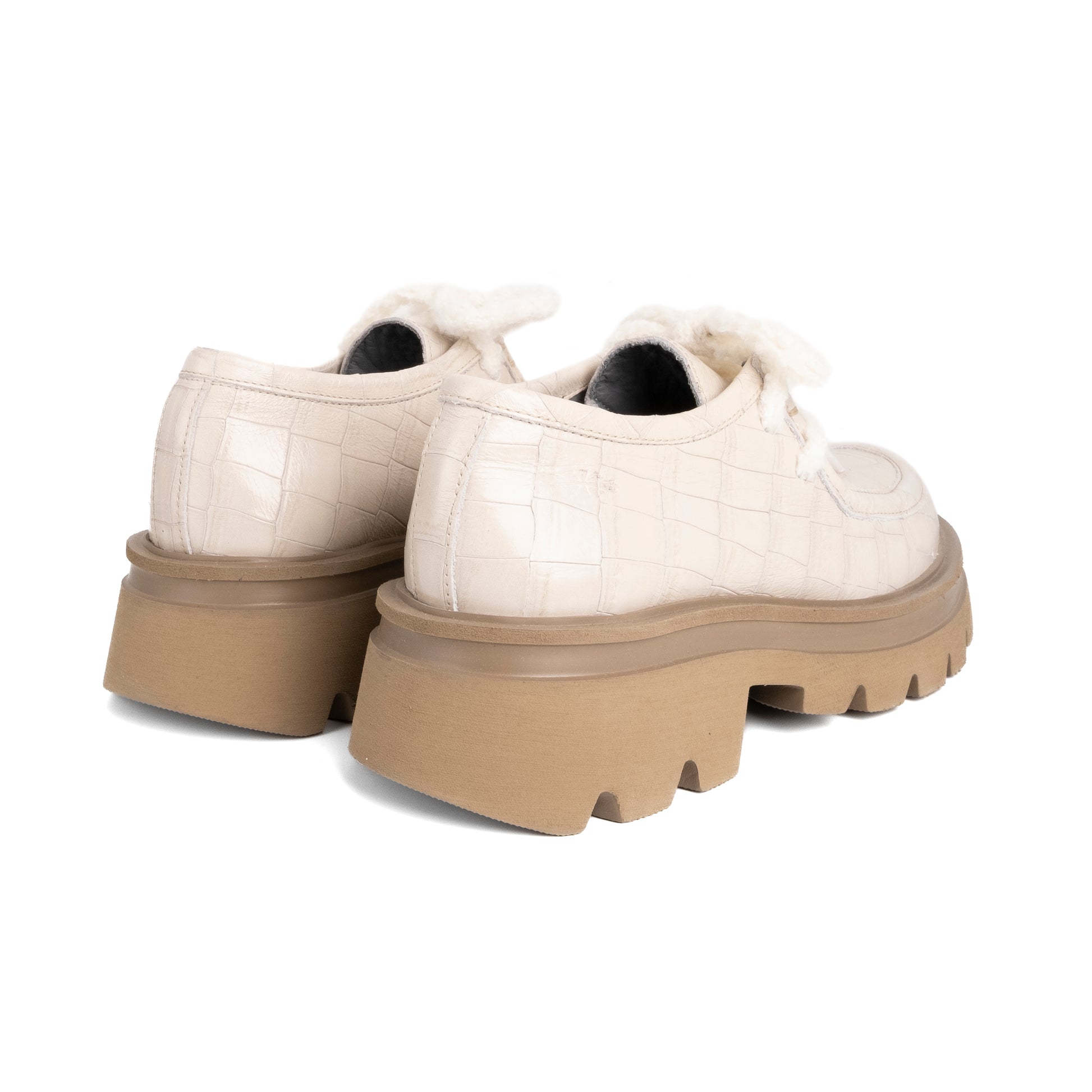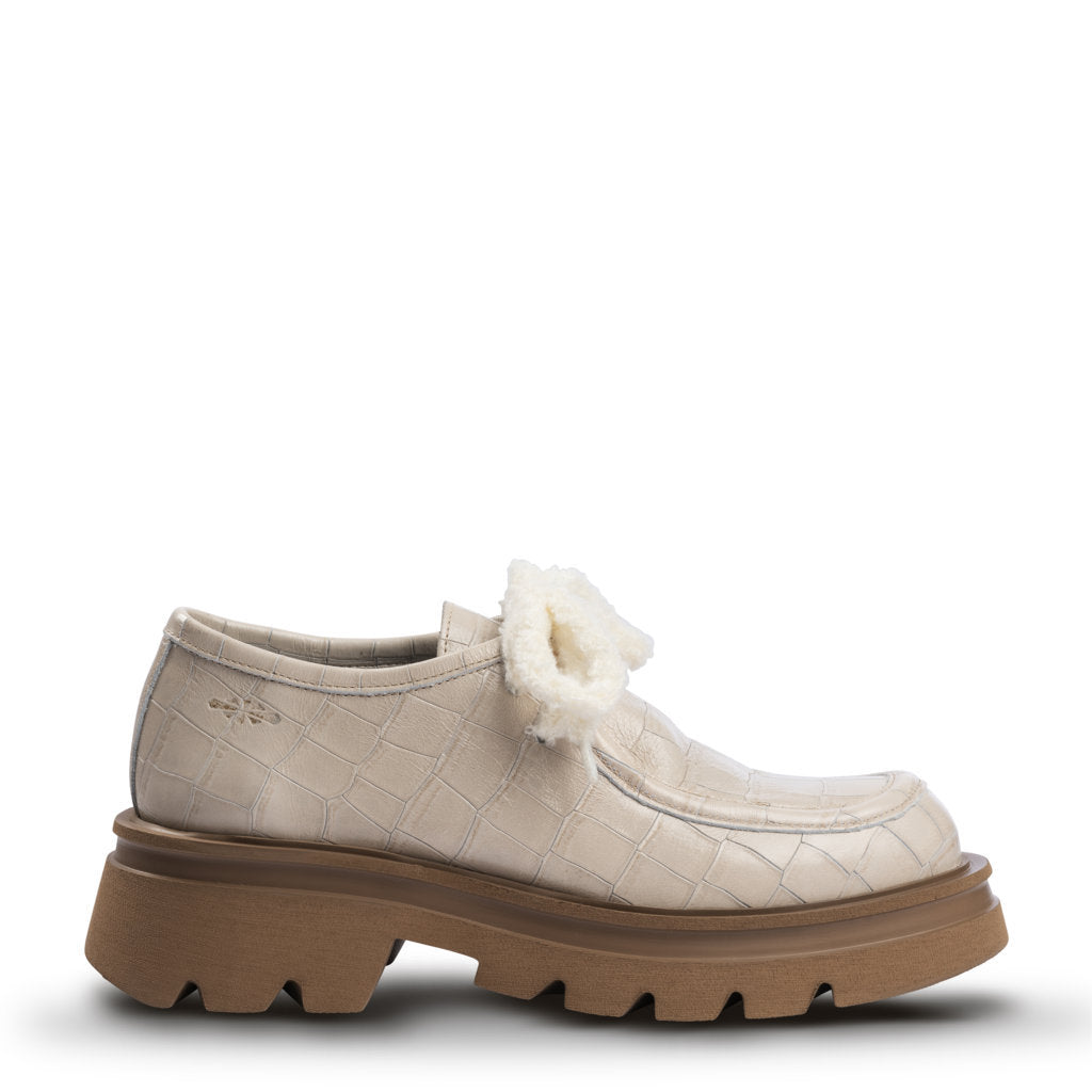 Discover the Ingy laced shoe, the perfect accessory for those who want to stand out with elegance. Made entirely from fine NATURAL COCONUT leather, this cream-colored footwear highlights the quality and refinement of Italian materials. The NATURAL COCONUT leather, with its unique and natural surface, gives the shoe a timeless charm, making it ideal to accompany you throughout the day with style and comfort. The rugged combat sole, sturdy and featuring an exclusive design, completes this creation that blends craftsmanship and sophistication. The Ingy leather shoe in NATURAL COCONUT leather is the perfect choice for those seeking a distinctive, sophisticated, and high-quality look.