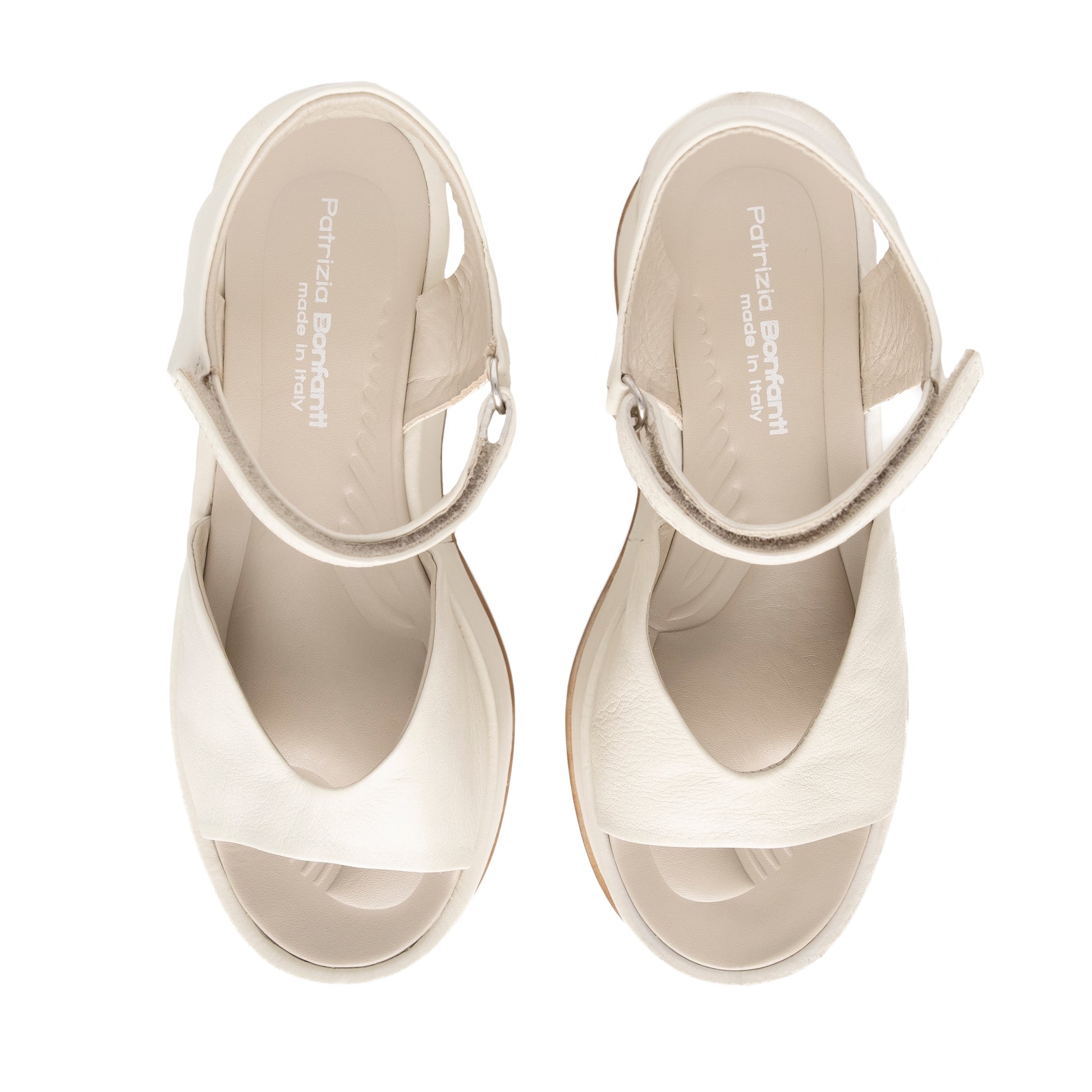 The JESSY wedge sandal is a true new addition to Patrizia Bonfanti's SS 2026 collection. A sandal that enhances every outfit, from the most casual to the most elegant. Made in Italy, this bold shoe exudes boldness, from the leather-wrapped wedge to the matching midsole and leather strap that wraps around the foot and makes walking easier in every way. The buckle detail further enhances the shoe.