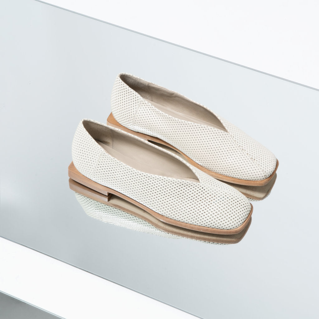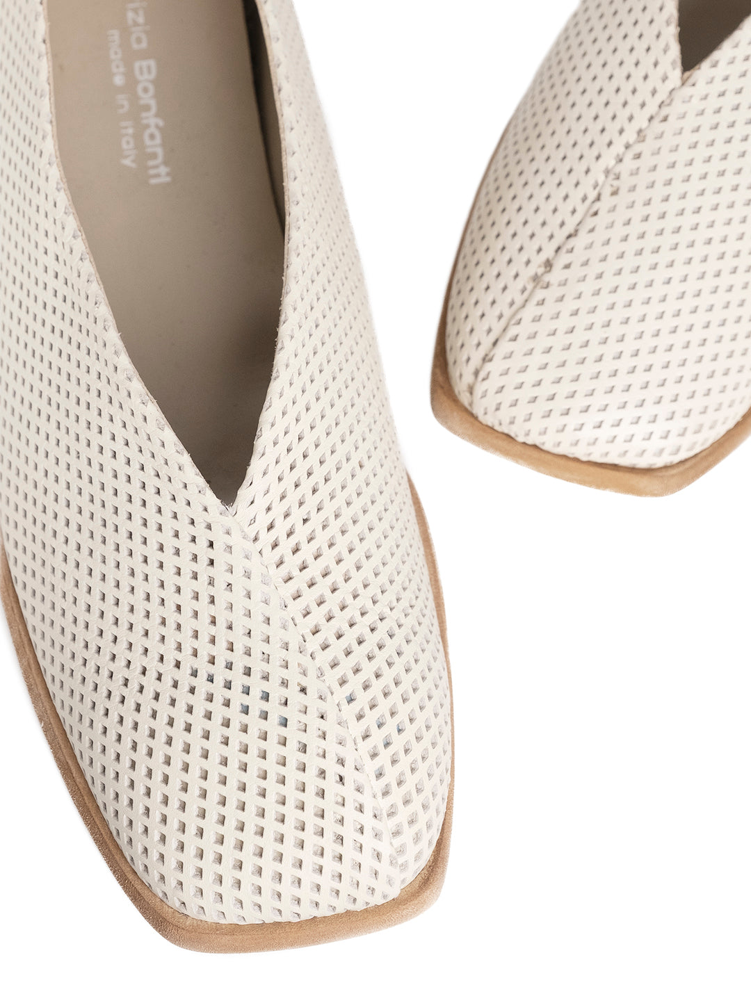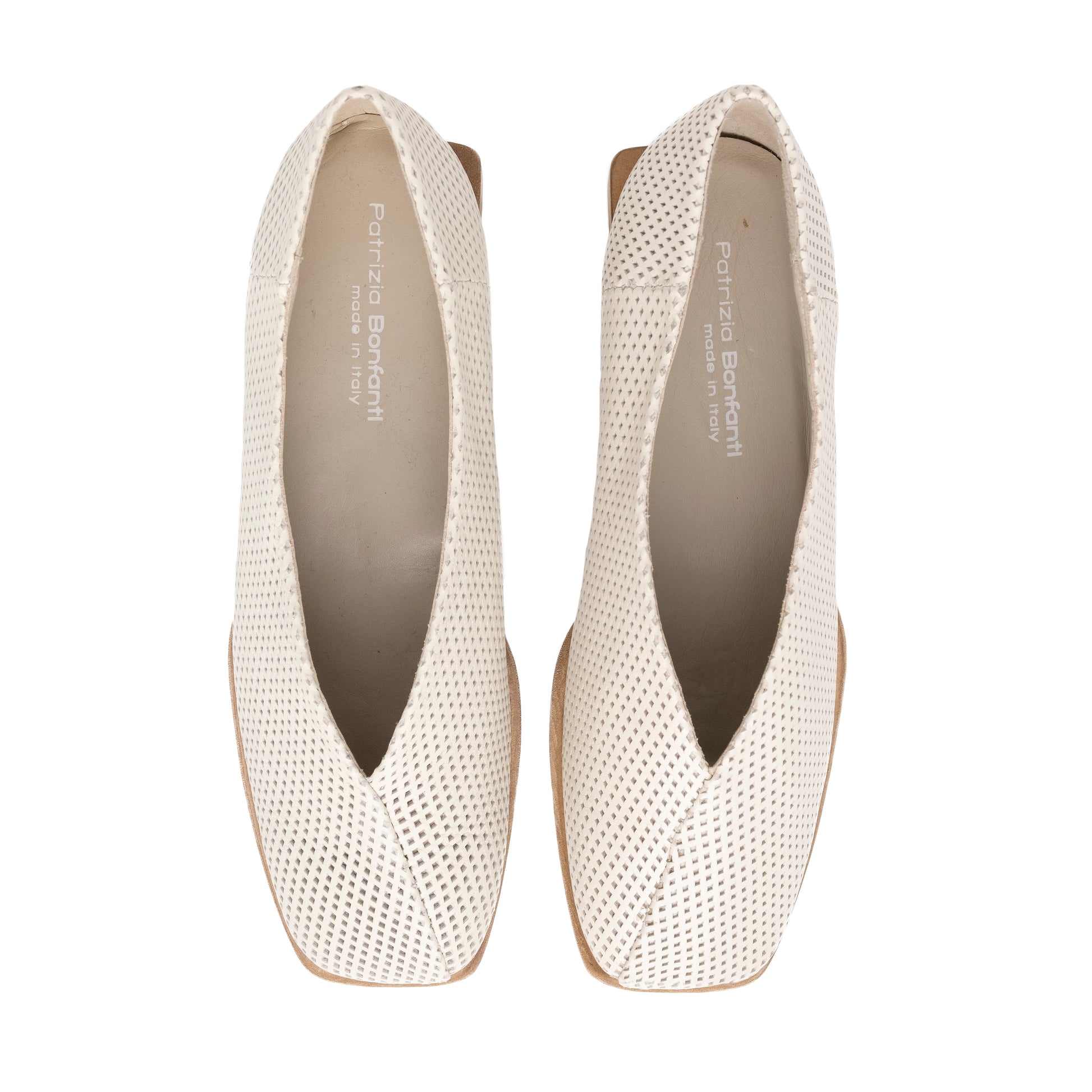 These Patrizia Bonfanti ballet flats express contemporary femininity with a refined perforated leather upper, handcrafted to ensure lightness, breathability, and comfort.