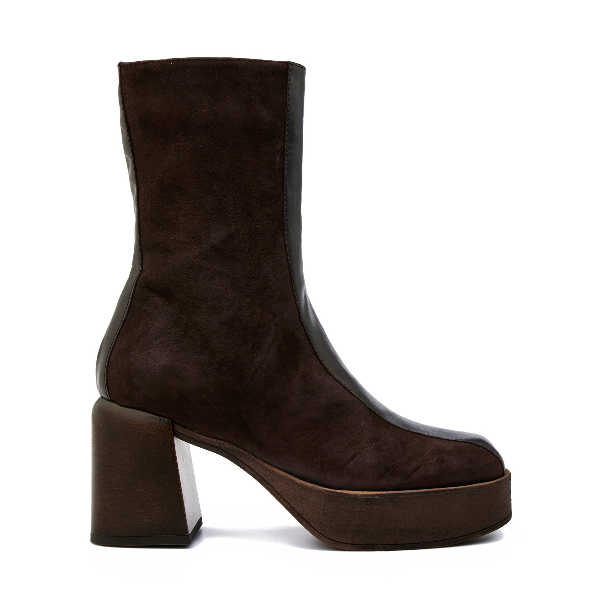semi-tube calf ankle boot with internal leather zip. sole up heel height 85 width 40 platform 30, leather interior, rubber sole